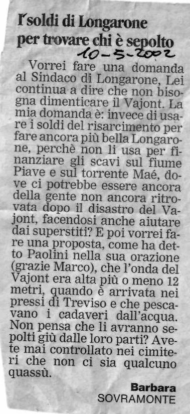 Vajont, minoranza critica sugli eventi (Longarone) |